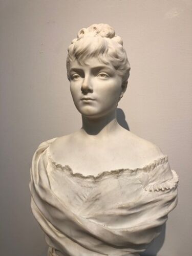 西洋美術館常設展で気になった作品を幾つか。 本館から新館に移る回廊を渡ってすぐの部屋、以前だとマネ、ルノワール、シスレー、セザンヌなど18世紀から19世紀の作品が展示してあるスペースに1点大理石の彫刻があった。 「マリー・バシュキルツェフの胸像 …