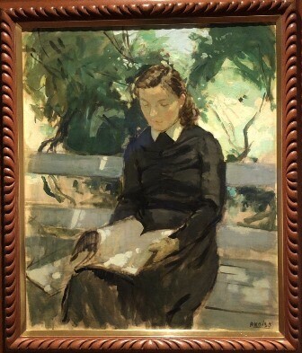 これは多分初めて観る作品。そして今回の訪問では一番気にいった作品だ。この女子学生のモデルはあの「斉唱」で描かれているモデルとどうも同じような気がする。黒の洋服(制服)も神戸松陰女子学園のものだ。制作年も《斉唱》と同じ1941年。この当時、小磯良平はこの学校で非常勤講師をしていたという。教え子の中にこうした顔立ちの方がいてモデルにしたのだろうか。