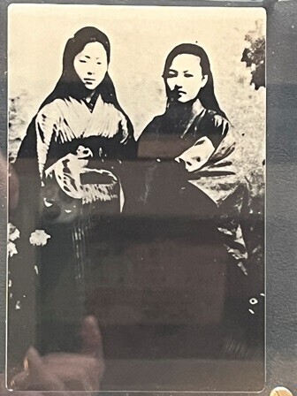 展示品の中でちょっと興味を覚えたのは、杢太郎の姉が女学校時代に樋口一葉と同窓生で、二人で移った写真が展示してあった。髪を下した女学生の一葉が写っている写真はとても珍しい。左が太田たけ、右が樋口一葉。